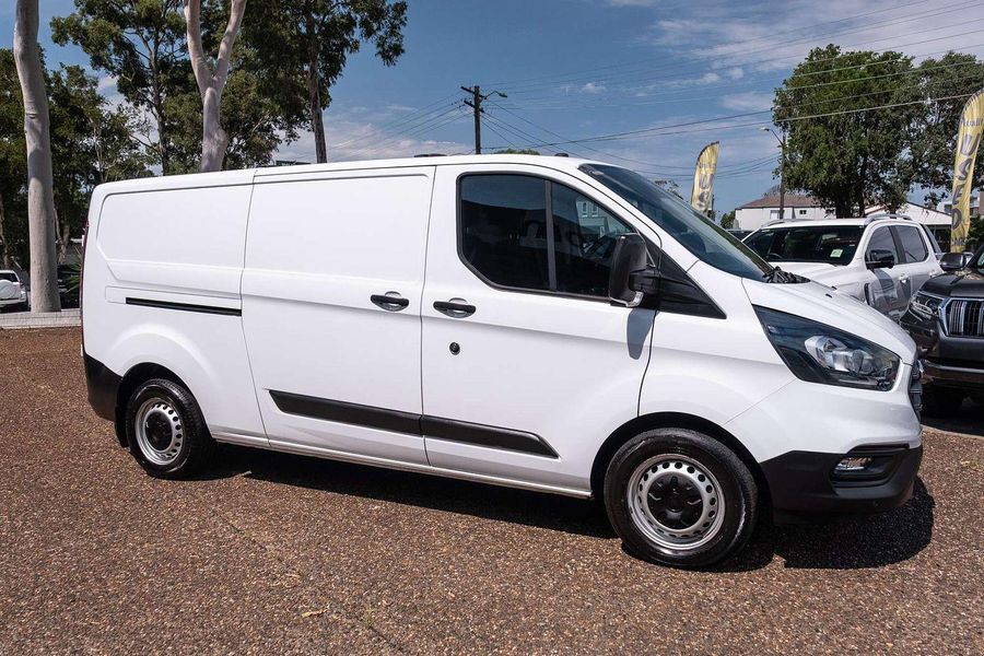 - Introducing the impressive 2019 Ford Transit Custom 340L VN in a striking white finish.